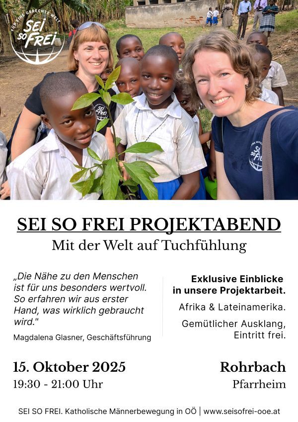 SEI SO FREI PROJEKTABEND Herzliche Einladung zu diesem Abend am 15. Oktober 2025 um 19:30 Uhr ins Pfarrzentrum Rohrbach